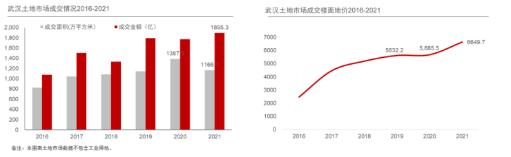 2021年,武汉共挂牌出让地块202宗,其中最终成交179宗,总成交面积达1166.1万平方米,总出让金额1895.3亿元,较去年同期上升约6.8%。2021年武汉土地成交楼面地价达到6649.7元/平方米,较去年同期上涨约17.0%。价格方面,对比2020年,2021年武汉市各区楼面成交均价出现分化,主力出让区域价格稳中有降。具体来看,今年的主力出让区域次中心城区成交楼面均价整体都同比去年有所下降;远城区大部分区域成交楼面均价同比稳中有升;中心城区受具体出让地块位置的影响,有涨有跌,整体保持平稳,其中武昌区受核心优质地块(武昌湾地块)出让的影响,涨幅略显明显。