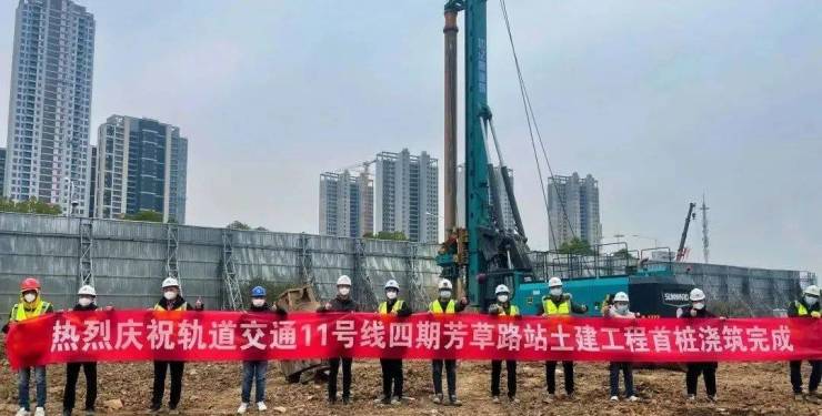 12月28日消息,搜狐焦点获悉,近日,伴随着桩机的轰鸣声,由汉阳市政承建的武汉市轨道交通11号线芳草路站及联络线土建预埋施工项目首根灌注桩顺利浇筑,标志着本工程正式开工建设。