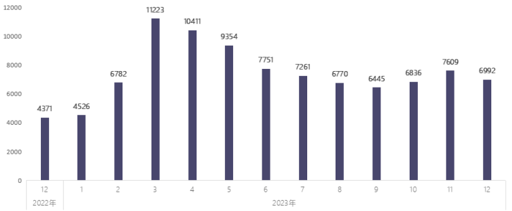 2023年12月,武汉市二手住房新增挂牌房源6789套,环比减少17.54%,同比增幅70.49%。