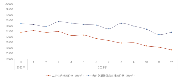 2023年12月,武汉二手住宅总体挂牌价格为15820.43元/平,环比下跌1.51%。其中新增房源挂牌价格17526.10元/平,环比上涨1.24%。