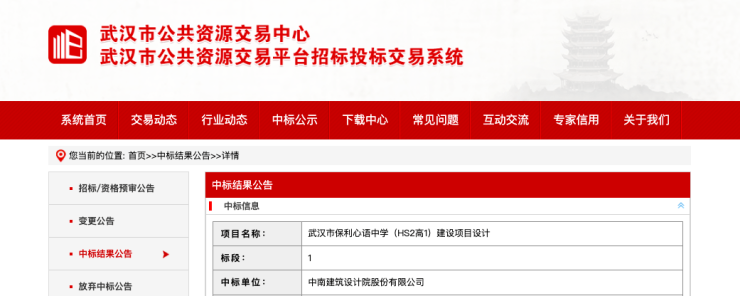 5月6日消息,搜狐焦点获悉,近日,武汉市公共资源交易中心网站公布了武汉市保利心语中学(HS2高1)建设项目勘察、设计的中标结果。