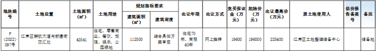 11月29日消息,搜狐焦点获悉,武汉土地市场网发布公告。根据《中华人民共和国土地管理法》、《招标拍卖挂牌出让国有建设用地使用权规定》和《武汉市土地交易管理办法》等有关法律、法规和规定,经研究决定,我局现对武告字(2022年)16号公告中的以下地块出让时间安排作如下调整:P(2022)097号地块挂牌出让揭牌时间调整至2022年12月20日9时30分,其竞买保证金及竞买申请的提交时间延长至2022年12月19日17时整。