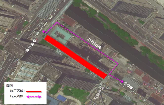 4、原需通行松竹路的行人可绕行汉街步行街。