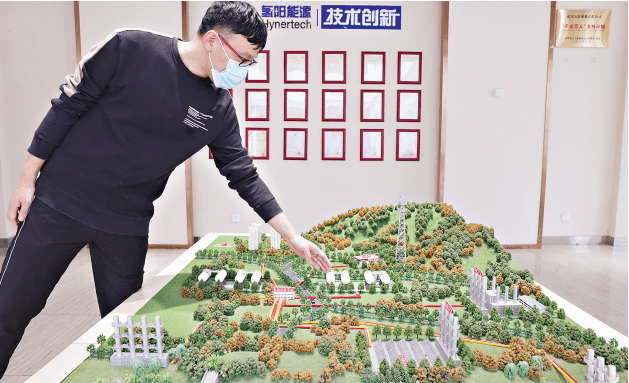 20日,武汉氢阳能源工作人员通过沙盘模拟,介绍制氢、储氢、运氢、用氢以及储油的回收再利用的一整套系统。