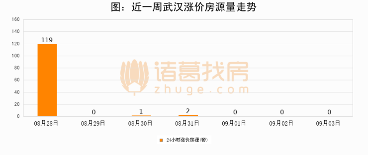 根据诸葛找房数据显示,武汉24小时涨价房源量为0套,较09月02日持平。