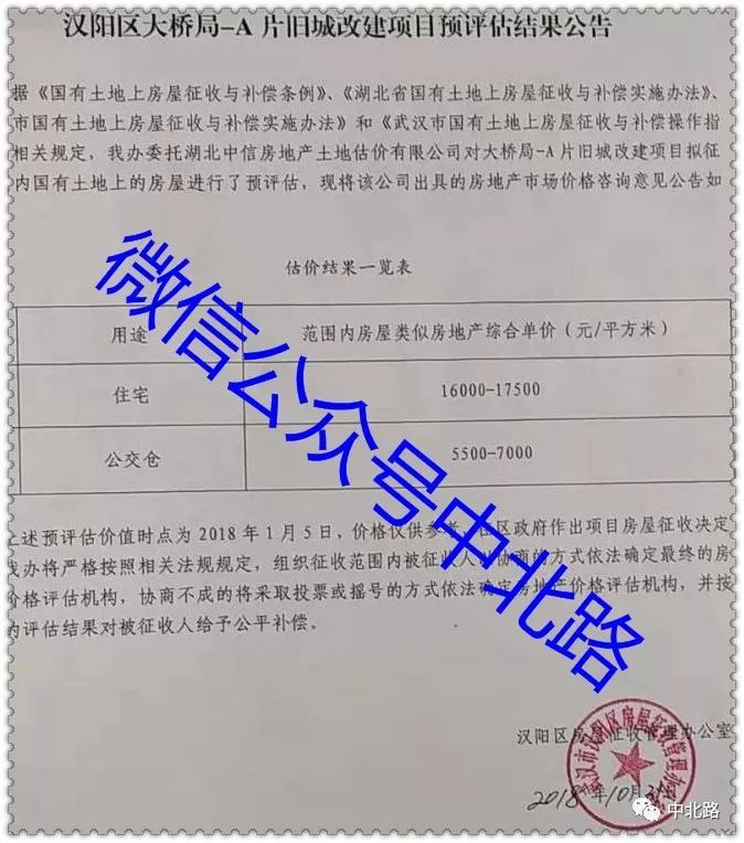 微信公众号中北路(作者姜华jianghua2046)获悉,武汉汉阳拆迁:大桥局A片评估价出炉!住宅1.6-1.75万/平!