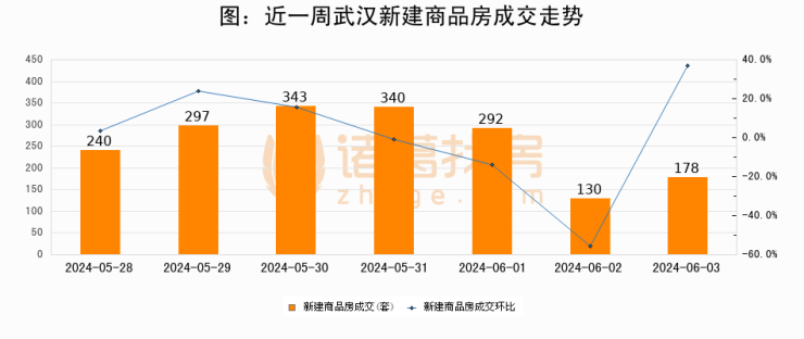 【武汉成交日报】06月03日新房成交178套;涨价房源106套