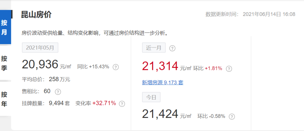 昆山市近一月二手房价格数据来源:全国房价行情网