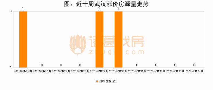 从调价房源来看,第34周武汉涨价房源0套,较上周持平。与此同时,34周涨价房源占比持平