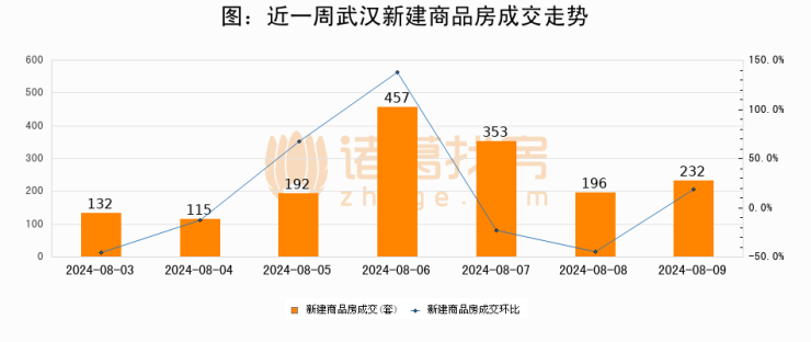 【武汉成交日报】08月09日新房成交232套;涨价房源55套
