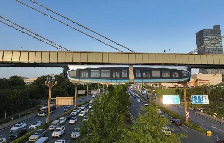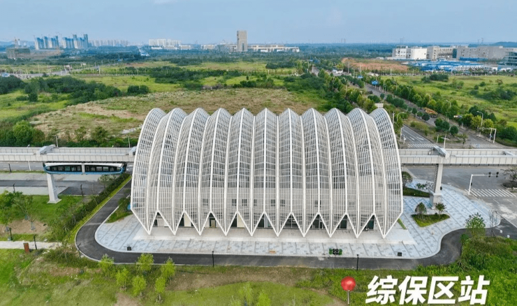 空轨列车采用全自动无人驾驶模式运营,最高运行时速60公里,初期采用2节编组,最多能容纳220余人,同时可在2-3节车厢之间灵活编组,适应不同客流运输需求。