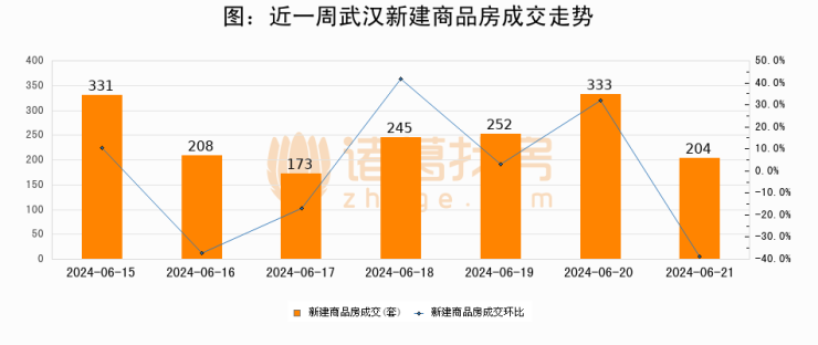 【武汉成交日报】06月21日新房成交204套;涨价房源58套