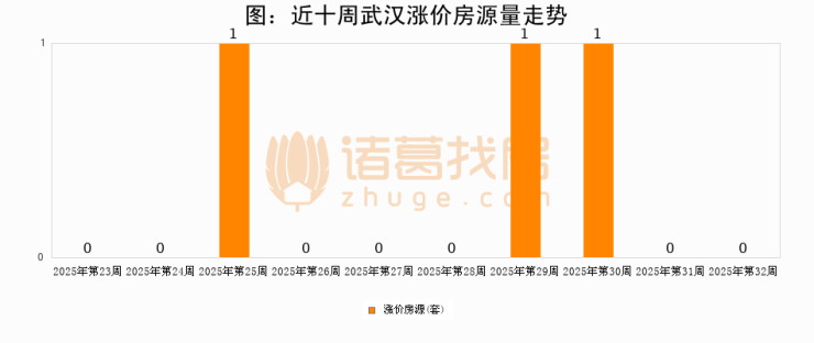 从调价房源来看,第32周武汉涨价房源0套,较上周持平。与此同时,32周涨价房源占比提升100个百分点,业主信心持续恢复。
