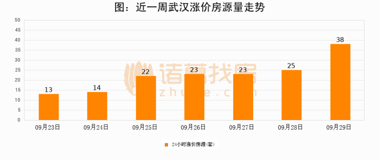 根据诸葛找房数据显示,武汉24小时涨价房源量为38套,较09月28日增加13套,环比上涨52%。与此同时,涨价房源占比小幅扩大,业主信心有所提升。