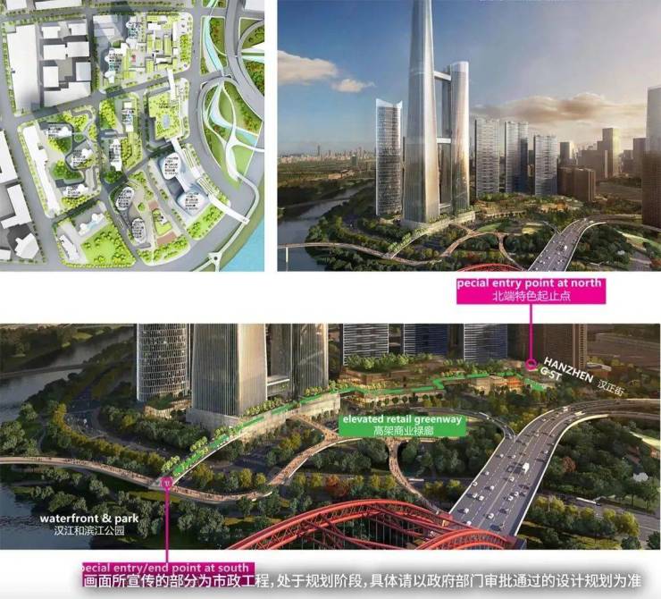 2019.5——武汉规划院与上海市政总院设计联合体深化汉正阳台方案,5月22日市政府专题会明确要求将汉正阳台打造高级景观阳台,需包含城市公共活动广场,集市政、交通、商业、文化、休闲游憩等功能;