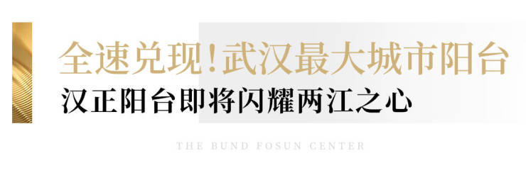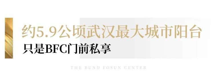 BFC复星外滩中心,紧密连接高级阳台——汉正阳台,全景式融入规划、功能、导视一体化,轴线互联直通BFC,零距离私享汉正阳台超级规划,全球TOP级资源汇于两江之心,礼献武汉塔尖人士。