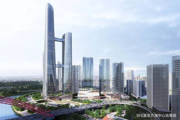 汉正阳台顺应江河浪潮之势,与晴川桥造型融合,设计以独特的山水氛围为基底,运用园林式造园手法,绿荫密布,移步异景,建筑景观与自然融合,气质格调与BFC相得益彰。BFC复星外滩中心,设计致敬长江、汉江文明,创新性采用曲线造型,赋予建筑流动的生命力,空中爱马仕镜面,以长江弧勾勒城市美学天际线。