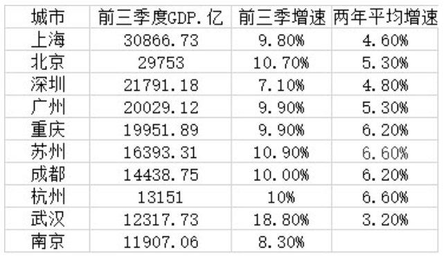 GDP总量排名前十的城市三季度经济数据目前均已公布。