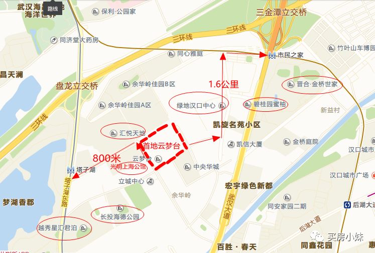 区位:江岸区华岭路与健美路交汇处(光明上海公馆旁)。从大区位上来说,首地云梦台属于西后湖板块,也叫塔子湖板块,此区域交通还是相当便利的,两纵两横,自驾非常方便,塔子湖在14年-16年还是有比较多的楼盘,但到了18年,就只有首地云梦台一个新房住宅,和碧桂园蜜柚的商住楼了。