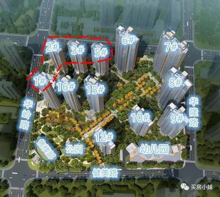 体量:总占地面积6.5万方,建面31万方,总户数,1465户,小区自带1.3万方商业,小区一共由12栋楼组成,分三期开发,其中一期分别为1、2、3、5号楼,二期分别为6、7、8、9号楼,三期为10、12、15、16号楼。本次首推的为一期4栋楼。