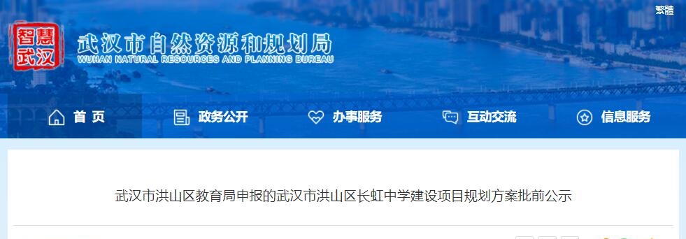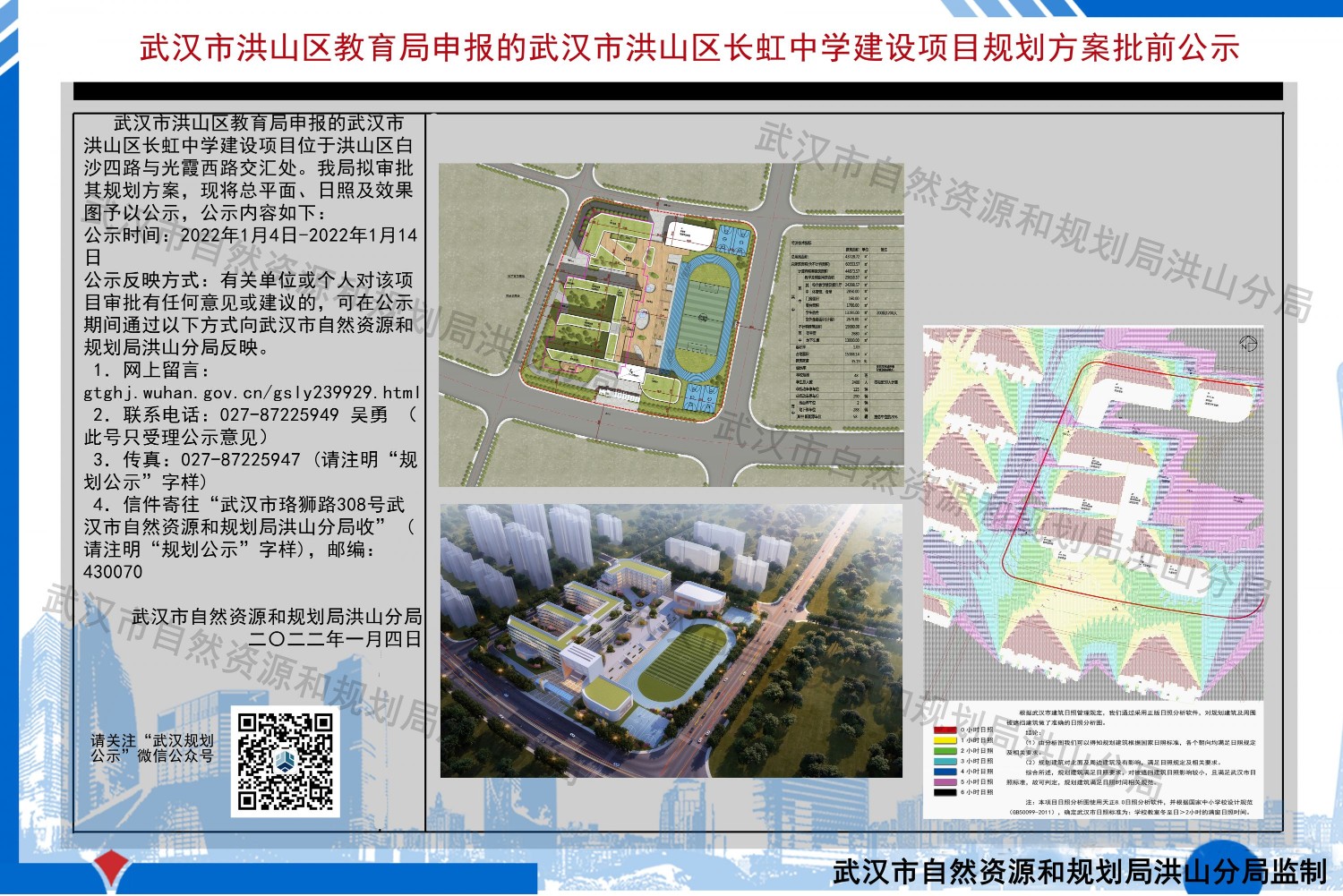 1月7日消息,搜狐焦点获悉,近日,武汉市自然资源和规划局发布武汉市洪山区教育局申报的武汉市洪山区长虹中学建设项目规划方案批前公示,该项目位于洪山区白沙四路与光霞西路交会处,华润紫云府小区东侧,武汉大学人民医院洪山院区西侧。