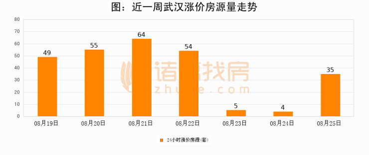 根据诸葛找房数据显示,武汉24小时涨价房源量为35套,较08月24日增加31套,环比上涨775%。与此同时,涨价房源占比小幅扩大,业主信心有所提升。