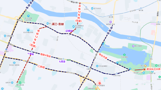 4号线串联汉阳、武昌核心商圈,还可与3、6号线换乘,直达汉口核心;地铁12号线已全线开工,经武昌火车站、汉口火车站两大交通枢纽;预计2024年完工,也就是在项目交付之时,刚好可以享受到12号线带来的便捷;