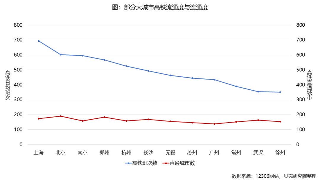 流通度:上海日均近七百班高铁