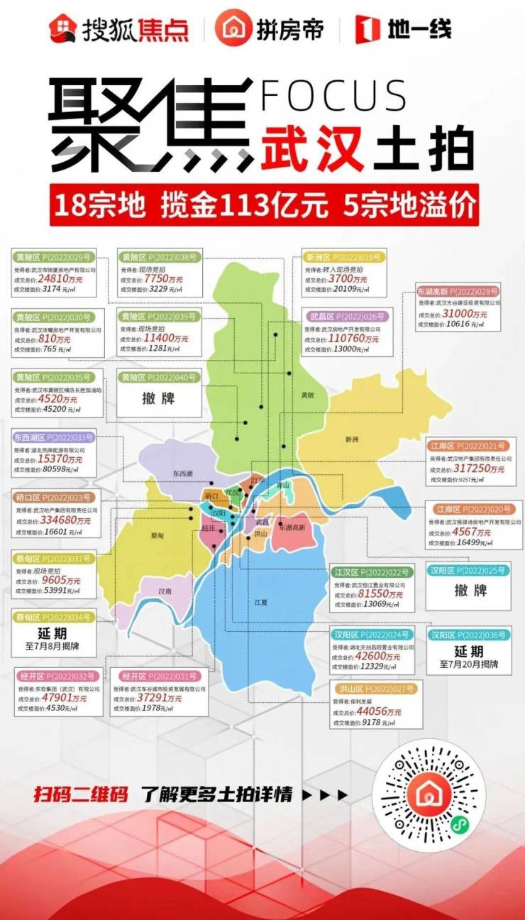 武汉今天的头条新闻,一定少不了今年第二批土地出让活动:18宗地,吸金113.11亿元!