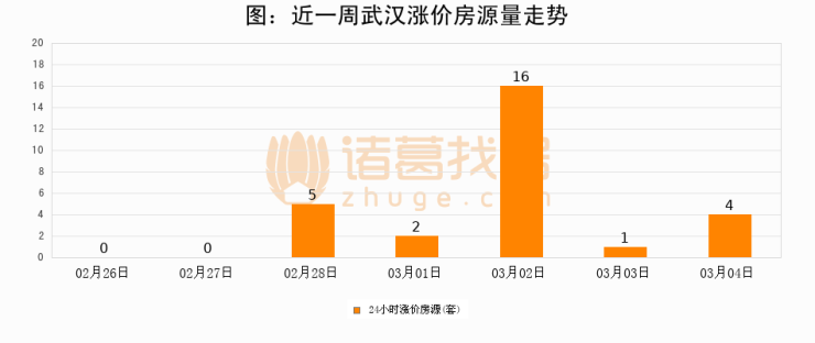 根据诸葛找房数据显示,武汉24小时涨价房源量为4套,较03月03日增加3套,环比上涨300%。与此同时,涨价房源占比小幅扩大,业主信心有所提升。