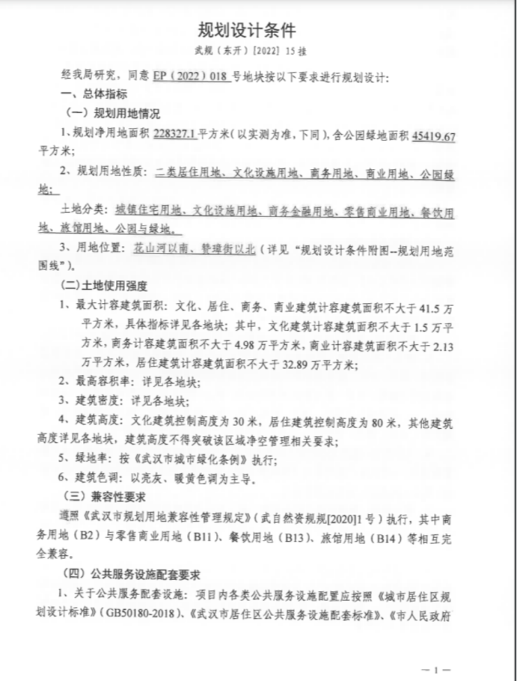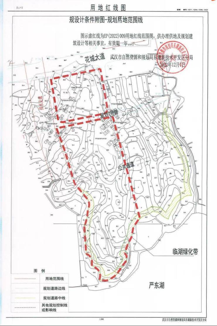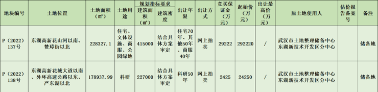 该地块位于东湖高新花山河以南、赞璋街以北。土地面积228327.1㎡,土地用途为住宅、文体设施、商服、公园绿地。建筑面积415000㎡,起始价292220万元。