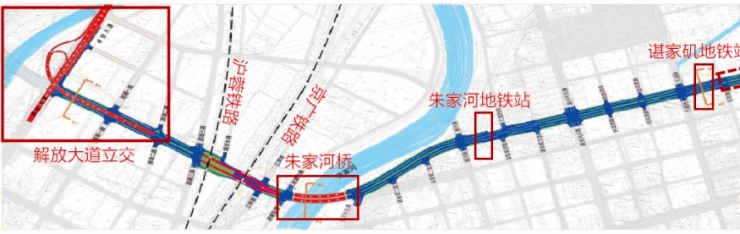 据中交二航局新区大道项目部副总工程师张尚智介绍,作为城区主干道,新区大道道路设计使用年限为15年,与高速公路同等级。其施工要下穿沪蓉铁路、京广铁路,上跨朱家河。