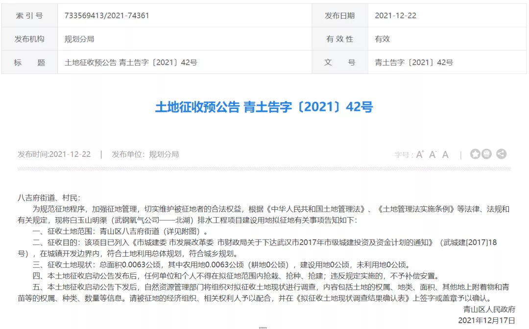 土地征收预公告 青土告字〔2021〕42号