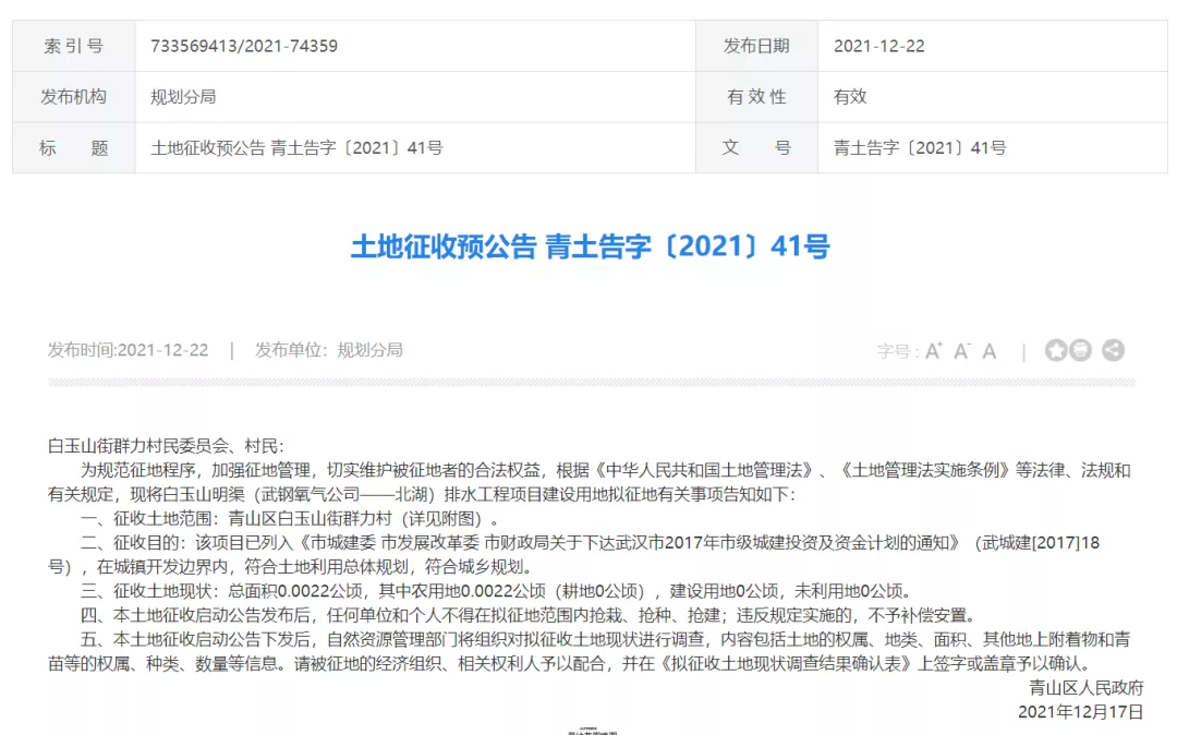 土地征收预公告 青土告字〔2021〕41号