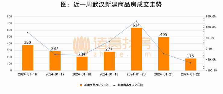 【武汉成交日报】01月22日新房成交176套;涨价房源97套