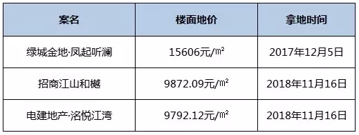 与它一同拿地的还有电建地产洺悦江湾,地价略低;一月后四新地王诞生,绿城金地凤起听澜拿地价超15000。三个地块挨在一起: