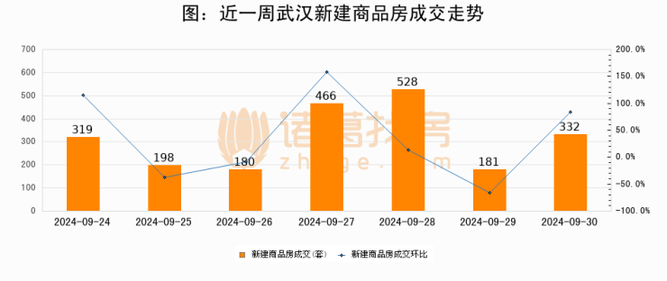 【武汉成交日报】09月30日新房成交332套;涨价房源38套