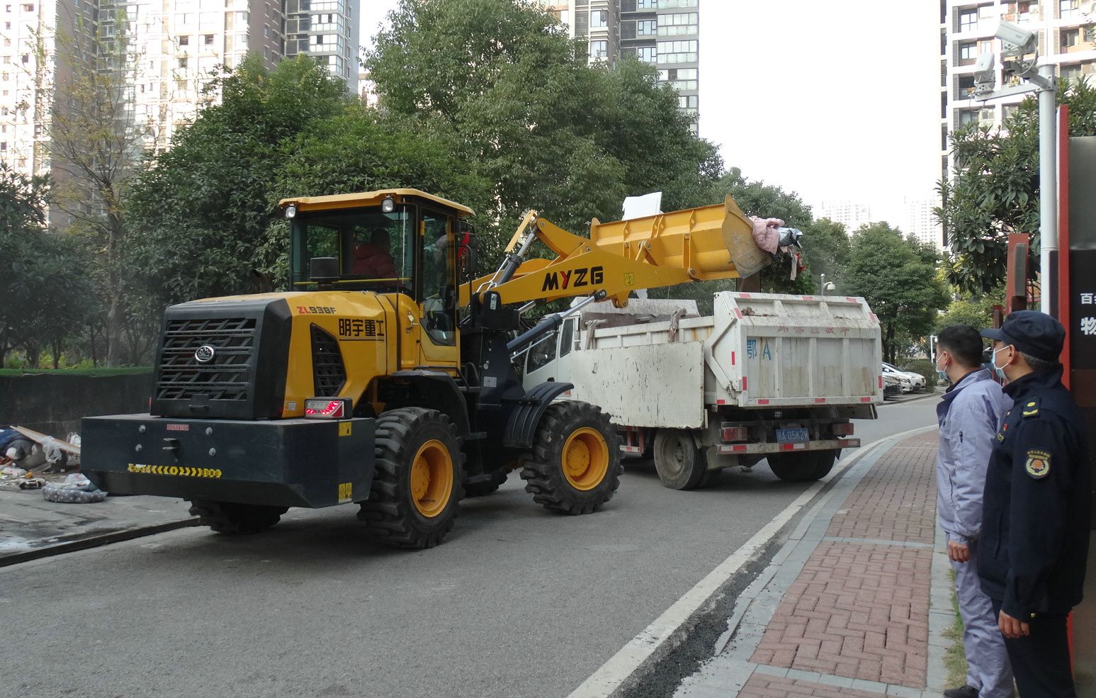 刘振华当即督促物业公司通过“清运通”APP与清运公司取得联系,约半小时后武汉百步亭环球管理有限公司派出的机械和车辆便出现在小区装修垃圾清运点旁,将堆积的垃圾全部转运。