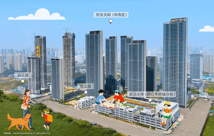 除了直属学校武汉小学(洪山华侨城分校)以外,华侨城·欢乐天际还规划建设了两所优质幼儿园:一所“积木城堡”,一所“童话木屋”。二期幼儿园预计于今年开学。