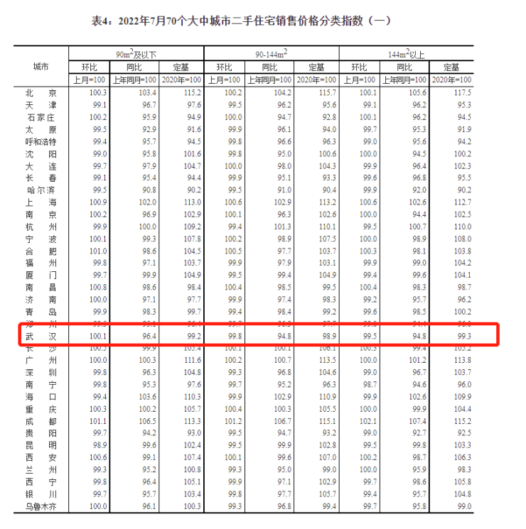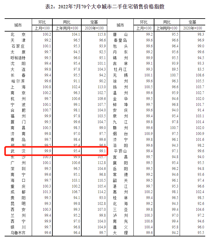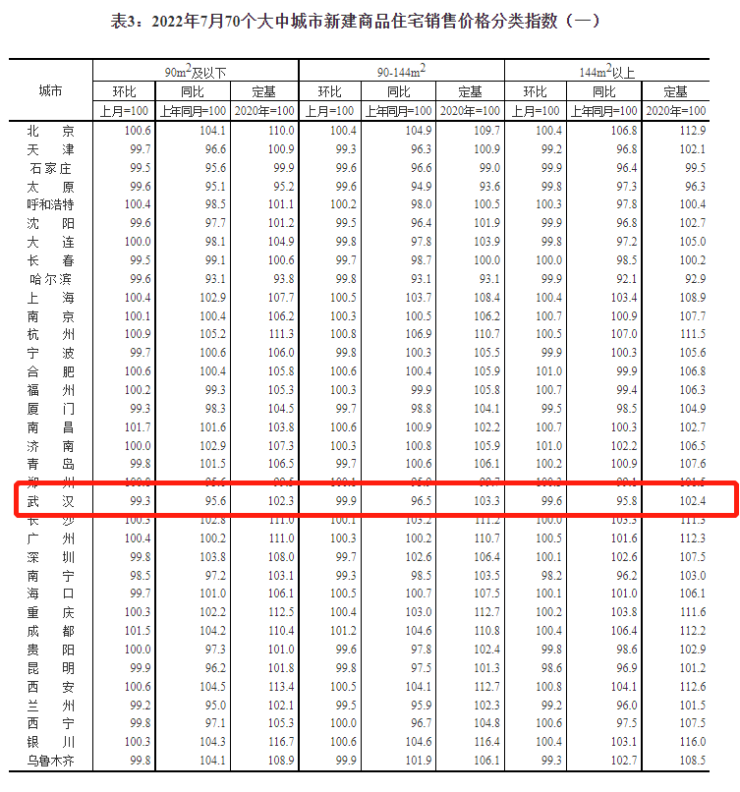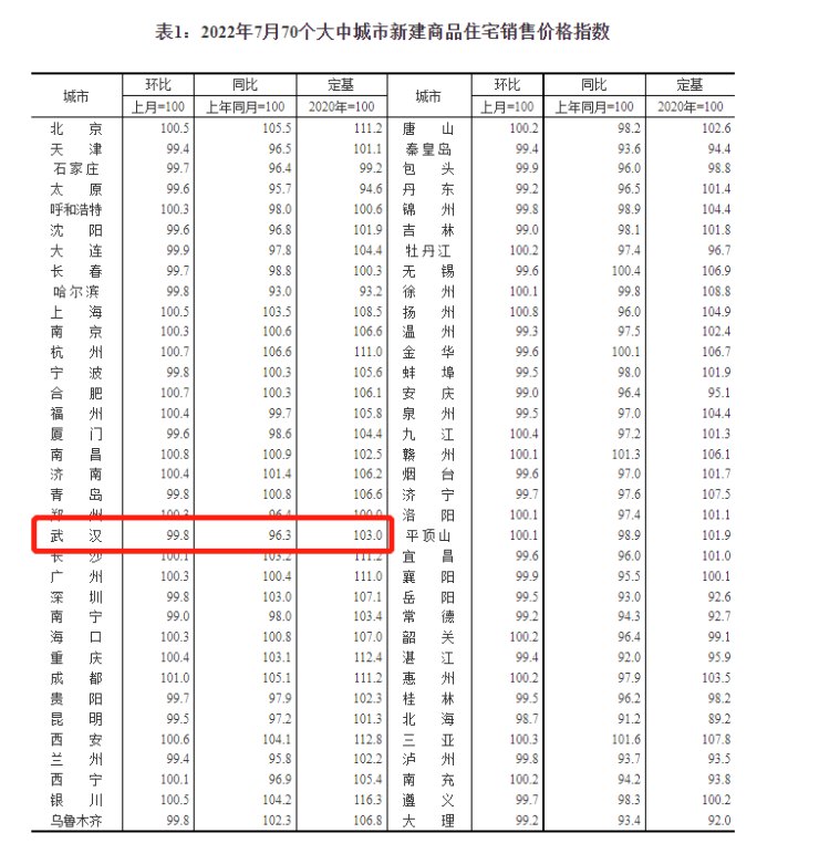 7月70城房价指数公布,武汉新房二手房价格双降!