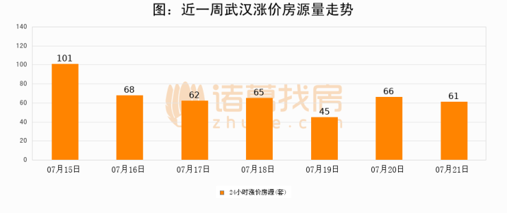 根据诸葛找房数据显示,武汉24小时涨价房源量为61套,较07月20日减少5套,环比下降7.6%。与此同时,涨价房源占比小幅回落,对于购房者来说是一个入市窗口期,购房者可抓住时机入市。