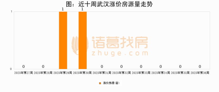 从调价房源来看,第36周武汉涨价房源0套,较上周持平。与此同时,36周涨价房源占比持平
