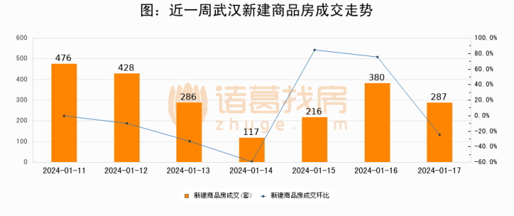 【武汉成交日报】01月17日新房成交287套;涨价房源111套