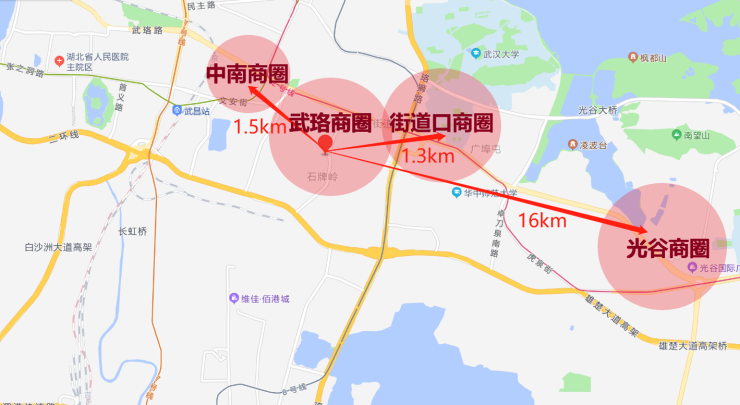 项目与80万方武商梦时代互补,打造全业态一站式消费商圈,3公里内覆盖街道口、中南、亚贸3大成熟商圈,集项目轻奢BLOCK街区铺、华中较大的奢侈品集聚地武商梦时代、与中心醇熟商圈于一体。