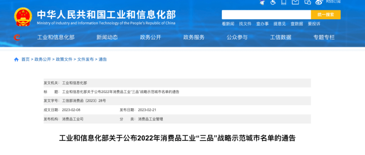 工信部网站信息显示,经地方申报、省级工业和信息化主管部门初审推荐、专家评审和网上公示等环节,此次共遴选出39个2022年消费品工业“三品”战略示范城市,湖北有两个城市上榜,武汉市是其中之一。
