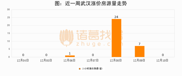 根据诸葛找房数据显示,武汉24小时涨价房源量为0套,较12月09日减少7套,环比下降100%。与此同时,涨价房源占比小幅回落,对于购房者来说是一个入市窗口期,购房者可抓住时机入市。