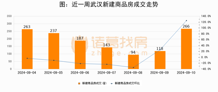 【武汉成交日报】09月10日新房成交266套;涨价房源11套