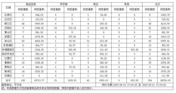 8月11日消息,搜狐焦点武汉站播报武汉房地产市场主要数据如下: