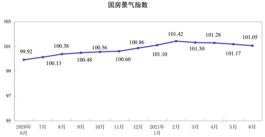 6月份,房地产开发景气指数(简称“国房景气指数”)为101.05。