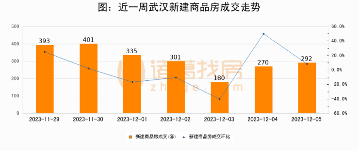 【武汉成交日报】12月05日新房成交292套;涨价房源144套